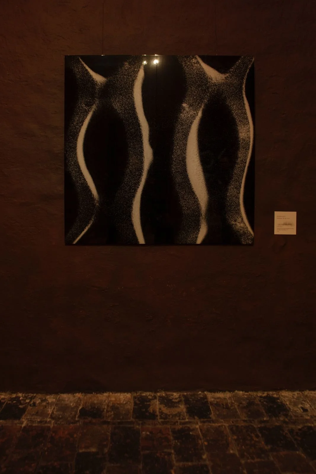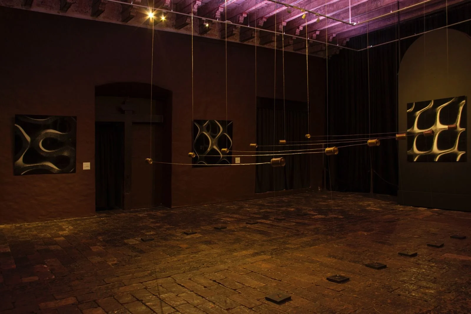 Además de esas piezas objetuales, ha concebido otro grupo de trabajos con base en una técnica muy elemental de estampado, siguiendo una dinámica de repetición. Sobre lienzos de mediano y gran formato plasma la estampa de una hoja que pinta previamente usando pincel y tinta negra, encima de la cual ejerce, delicadamente, cierta presión con su mano. Repite esa acción para obtener una imagen repetitiva, seriada, que se va volviendo cada vez más imprecisa -digamos que más débil-hasta que desaparece completamente una vez agotada toda la tinta. De esta forma pretende aludir a un cuerpo que, siendo único, adquiere, sin embargo, un carácter seriado a través de su uso -y abuso- mecánico y repetitivo dentro del sistema y las redes de la prostitución. Este estampado se organiza dentro de una estructura sencilla, que podría resultar a la vista como una plana de caligrafía, establecida a la manera de los renglones marcados en los cuadernos de uso escolar. Existe en estos trabajos el manejo consciente de un cierto grado de ambigüedad, debido a que pretende rescatar la huella individual de cuerpos que funcionan, sin embargo, como objetos seriados en sí mismos al participar de un servicio repetitivo y desgastante que les conduce al descarte, quedando fuera de la “línea de producción” para presenciar la condena de su propio deterioro en medio de tanta indiferencia colectiva. Es probable que durante su exhibición, estos trabajos se complementen con un sonido industrial que remita a la producción en serie y sustente estas ideas.