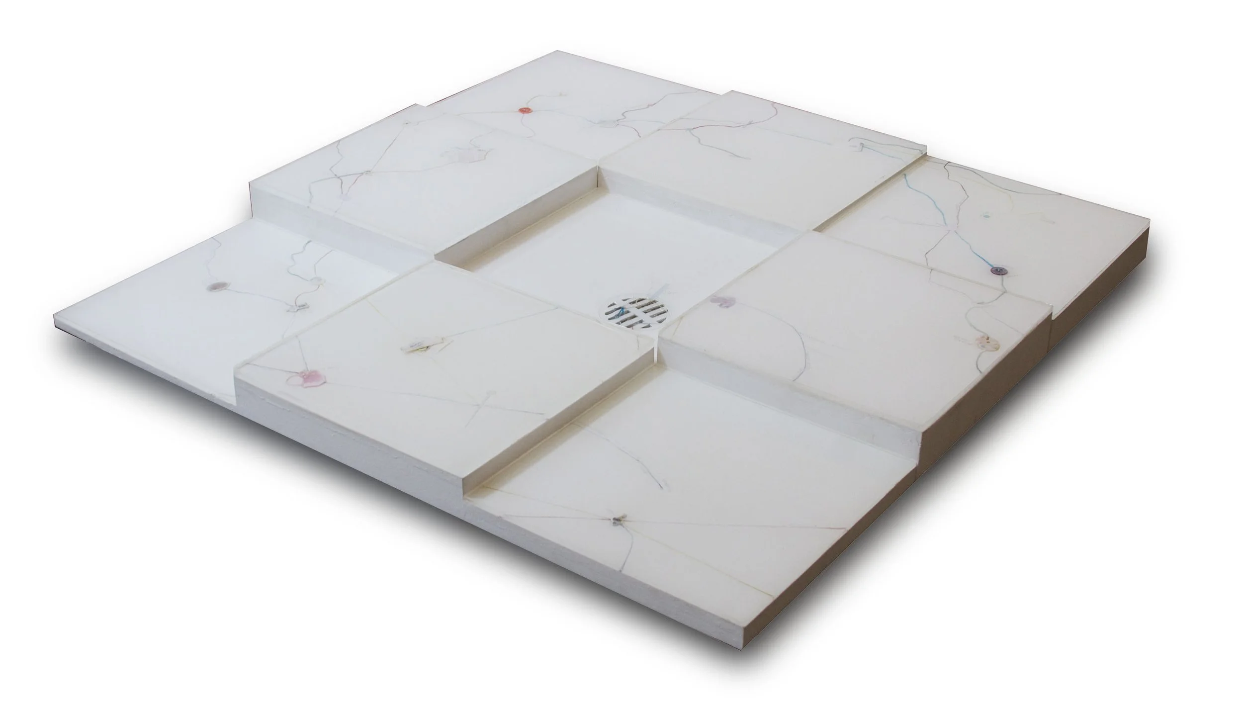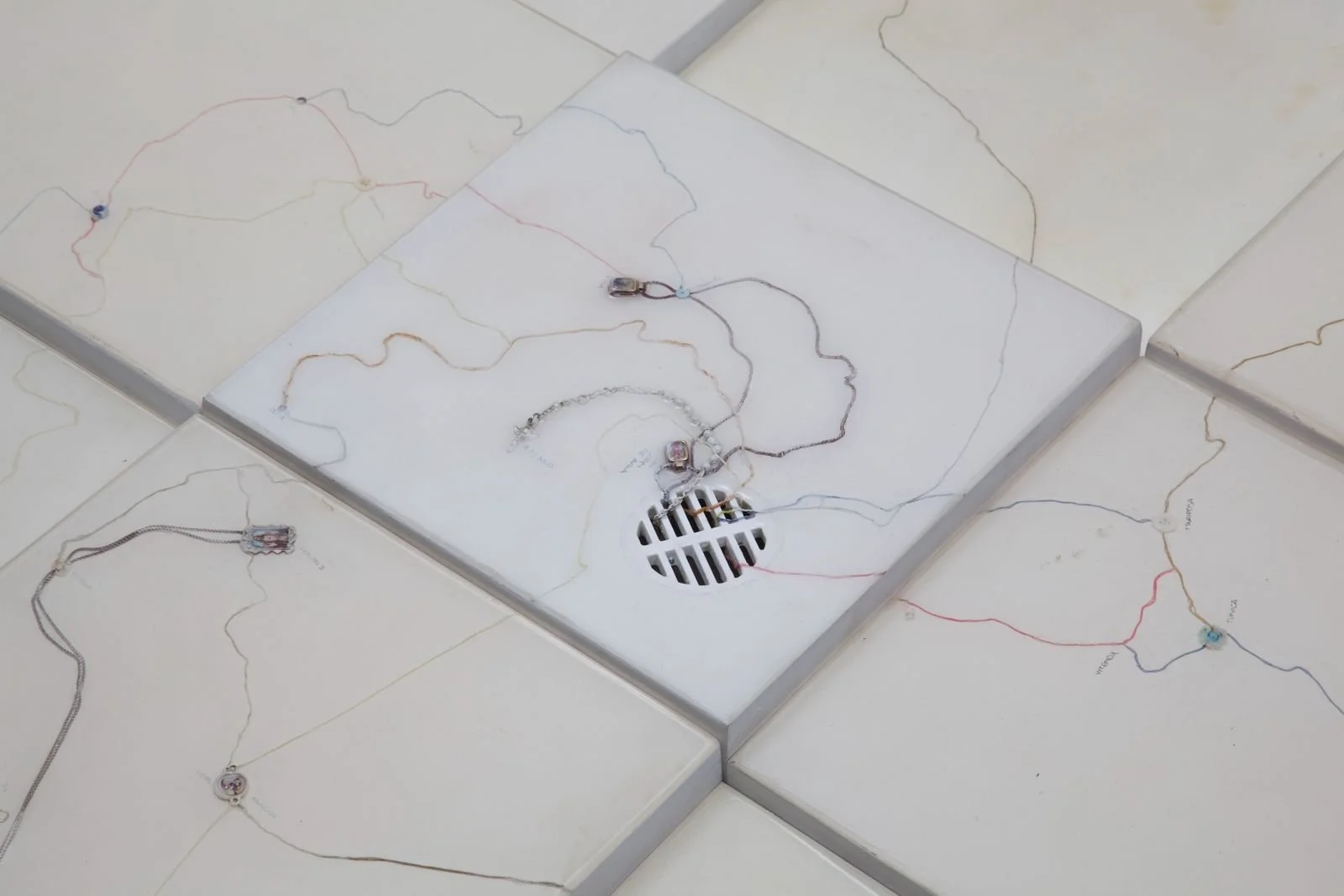 Nuestros momentos de intimidad son compartidos con otros. Así no estén presentes, las reflexiones que acompañan esos instantes están atravesadas por nuestras experiencias con lo ajeno, por historias que nos contaron, por sucesos que vivimos o por rostros que pasaron. Cuando tomamos un baño, sale a relucir esta dualidad entre el ego y lo extraño. Ahí, el agua cae sobre nuestros cuerpos, nos limpia y nos impregna con su pureza. Ella se mueve sobre nosotros a la vez que nuestra mente divaga y se va a otros espacios o tiempos. Cuarto flotante aborda precisamente esa ambigüedad: a través de un espejo doble situado en una ducha, nos invita a discurrir sobre nuestras propias complejidades y nuestra mente soñadora y dispersa, a la vez que propone reflexionar sobre las historias de otros. Ambas experiencias pueden ser tan cercanas o lejanas como cerca o lejos nos situemos del espejo.