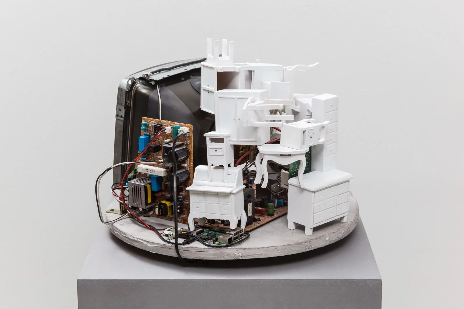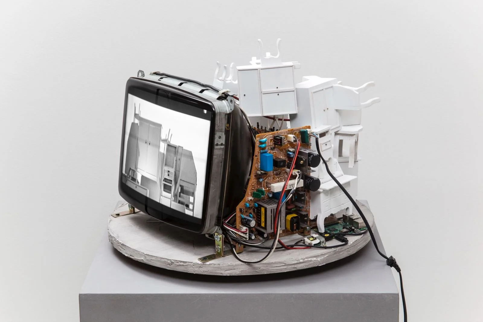 Detrás de cada obra, se ocultan profundas investigaciones y cuestionamientos. De allí han surgido testimonios de quienes, de alguna forma, han externalizado sus secretos contándolos a la artista. Esas historias se reproducen en un viejo televisor, cuyo sistema eléctrico está expuesto a la vista del público, como abriendo al mundo su insondable intimidad que, paradójicamente, es el motor que lo hace funcionar. De ese caótico sistema surge un pequeño secreter que redondea la obra, la finaliza, y le recuerda al fugaz televidente de dónde vienen todas esas historias con infidencias de otro mundo: de los lugares más íntimos y ocultos de la casa, como ese universo primario, en cuyos rincones cada ser humano construye la esencia de su existencia.