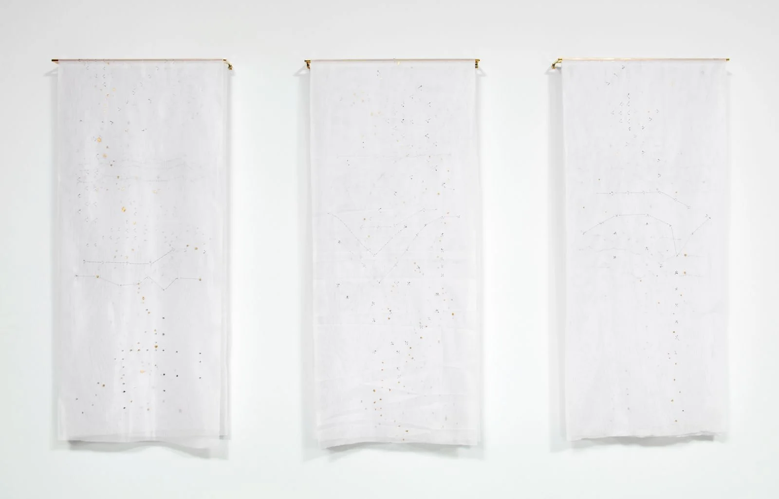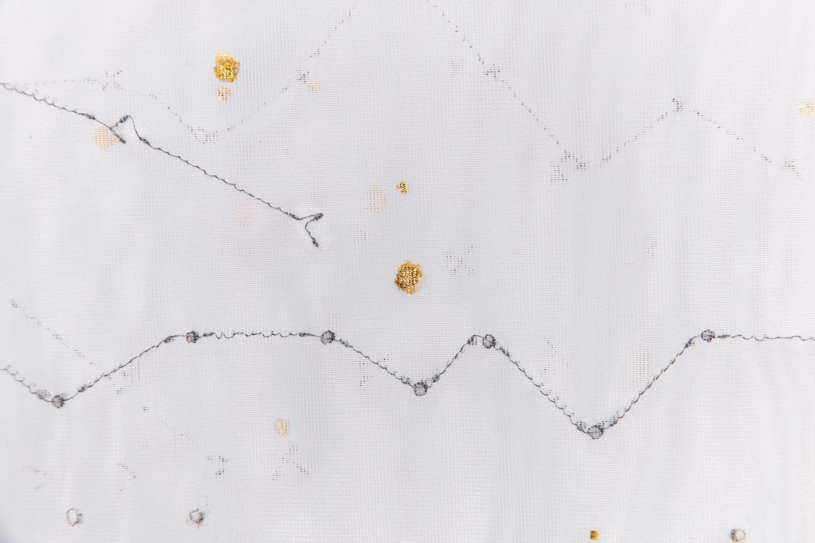 La segunda pieza que compone esta obra se titula Sonidos del Universo. Se trata de una pieza compuesta por audiogramas que interpretan los sonidos provenientes de las experiencias de las mujeres a quienes la artista entrevistó. Son sonidos que al final resultan ser el ruido que las personas se dicen de sus propias historias, ya que no hay un receptor dispuesto a oírlas sin juicios. La obra tiene entonces varias cortinas que se encuentran solapadas entre sí. En la primera de ellas, está dibujada una figura de onda que coincide con las voces de las personas cuyas experiencias fueron recopiladas. Sin embargo, los dibujos–que mezclan técnicas impresas y bordadas– se van disipando con cada capa de tela. Así, esta obra, que discute la eficacia del lenguaje humano mediante el canto de las aves, busca hacer concretas las formas en que muchas historias se naturalizan hasta el punto de volverse invisibles ante cualquier espectador.